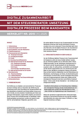 Die Digitalisierung revolutioniert die Zusammenarbeit zwischen Kanzleien und Mandanten. Mit unserem Merkblatt erfahren Sie, wie Sie digitale Prozesse erfolgreich integrieren. Profitieren Sie von schnelleren Abläufen, weniger Fehlerquellen und schaffen Sie mehr Zeit für wertschöpfende Aufgaben – trotz Fachkräftemangel.