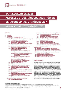 Obwohl die Regierung – aufgrund ihrer Neubildung – die Arbeit erst im Jahr 2025 aufgenommen hat, gibt es bereits eine Vielzahl von steuerlichen Änderungen. Einige Gesetzesneuerungen wirken sich bereits auf die Steuererklärungen 2025 aus, andere entfalten ihre Wirkung erst in der Zukunft. Neben den gesetzlichen Änderungen gibt es auch wichtige neue Verwaltungsanweisungen (BMF-Schreiben), die man kennen sollte. Dieses Merkblatt zeigt die wesentlichsten gesetzlichen Änderungen sowie Neuerungen durch BMF-Schreiben im Ertragsteuer- und Umsatzsteuerrecht auf. Dabei werden auch Neuregelungen durch bereits 2024 verabschiedete Gesetze, die nun aber erstmals zur Anwendung kommen, z.B. durch das Wachstumschancengesetz und das Jahressteuergesetz 2024, aber auch die neuen Regelungen durch das Gesetz für ein steuerliches Investitionssofortprogramm, die relevanten Gesetzesänderungen durch das Standortförderungsgesetz, die Steuerrechtsänderungen durch das Steueränderungsgesetz 2025 sowie das Aktivrentengesetz überblicksartig dargestellt. Mit diesem Merkblatt sind Sie fit für die Veranlagungssaison 2025 und gewappnet für die steuerlichen Beratungen und Fragestellungen ab VZ 2026!