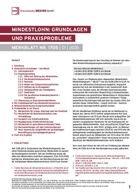 Das Merkblatt erläutert die sich aus dem MiLoG und der zwischenzeitlich dazu ergangenen Rechtsprechung ergebenden Grundlagen zum Mindestlohn, beleuchtet besonders praxisrelevante Themen und gibt dazu wertvolle Hinweise.