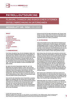 Das neue Merkblatt wägt Vor- und Nachteile der Auslagerung der Entgeltabrechnung an einen externen Dienstleister ab und hilft bei der Entscheidungsfindung und Planung.