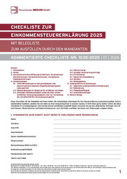 Wenn in der Hochsaison jede Minute zählt, braucht es Unterlagen, die wirklich helfen. Das Paket „Einkommensteuererklärung 2025“ unterstützt Sie und Ihr Team dabei, die Einkommensteuererklärung 2025 standardisiert, effizient und sicher zu erstellen – von der Mandantenvorbereitung bis zur abschließenden Prüfung