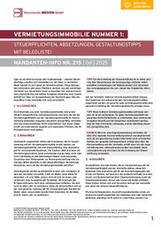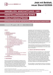Enthalten sind praxisbewährte Merkblätter u. a. zu Bewertung, Anschaffungs- und Herstellungskosten, Ferienimmobilien, verbilligter Vermietung, Grundsteuer sowie Grunderwerbsteuer. Zusätzlich erhalten Sie eine Mandanten-Info zur 1. Vermietungsimmobilie als PDF zur direkten Weitergabe.