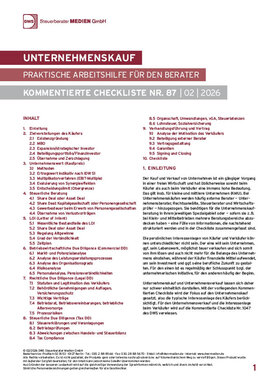 Bei Unternehmenskäufen werden häufig externe Berater, wie z. B. Steuerberater, Wirtschaftsprüfer, Rechtsanwälte und Unternehmensberater, hinzugezogen. Sie benötigen für die Unternehmenskaufberatung eine Fülle von Informationen. Diese werden in der Kommentierten Checkliste strukturiert aufgezeigt und zusammengefasst.