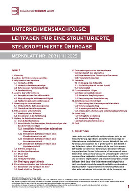 Aktuell und für die nächsten Jahre ist die Unternehmensnachfolge eines der vorherrschenden Themen für KMU und damit auch für deren Steuerberater. Es handelt sich um ein hochkomplexes Thema, das individuelle Lösungen verlangt. Einen hohen Stellenwert haben schenkungsteuerliche Optimierungen und ertragsteuerliche Belastungen, die auch als ungewollte Folge bei üblichen Gestaltungen entstehen können. In der Praxis erweist es sich als außerordentlich hilfreich, eine Guideline zur Hand zu haben, die möglichst vollständig alle Aspekte der Unternehmensnachfolge beleuchtet, Wege aufzeigt und auf Stolperfallen hinweist. Mit dem Gestaltungsleitfaden zur Unternehmensnachfolge erhält der Steuerberater die zielgenaue praxisnahe Unterstützung, die er braucht, um den Mandanten bei der Nachfolge begleiten zu können.