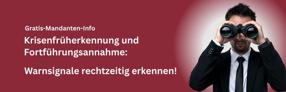 Diese Mandanten-Information zeigt Ihnen, woran Sie erkennen, dass Ihr Unternehmen in Schieflage gerät – und was Sie dagegen tun können. Besonders wichtig ist dabei auch die Fortführungsannahme (§ 252 Abs. 1 Nr. 2 HGB), die bei der Bilanzierung zu beachten ist, und die rechtlichen Konsequenzen bei bestehenden Krisenindikatoren. Beide, Krisenfrüherkennung und Fortführungsannahme, sind eng miteinander verknüpft.